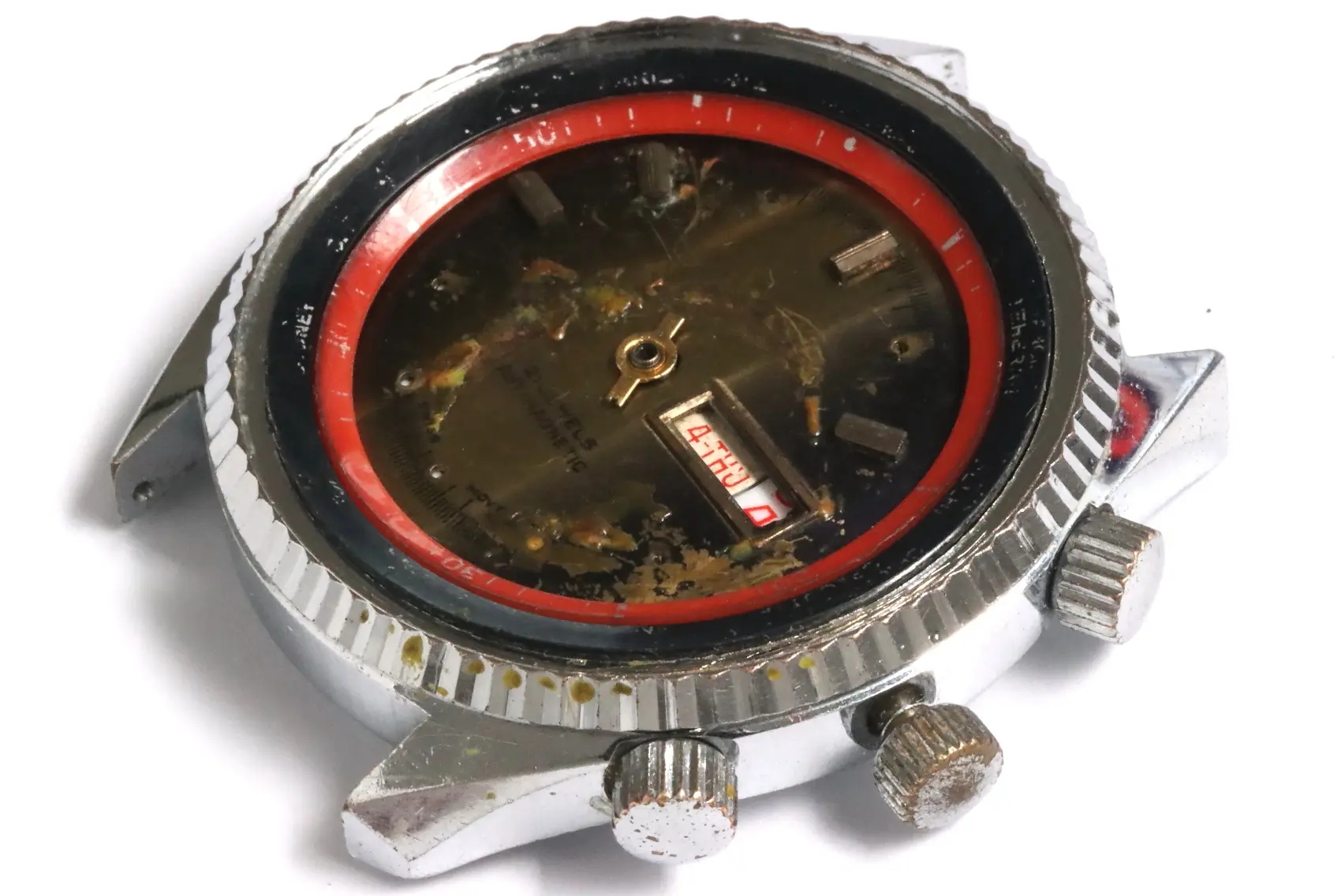 We haven't examined the watch's interior. Movement parts may be missing, rusty, or broken
