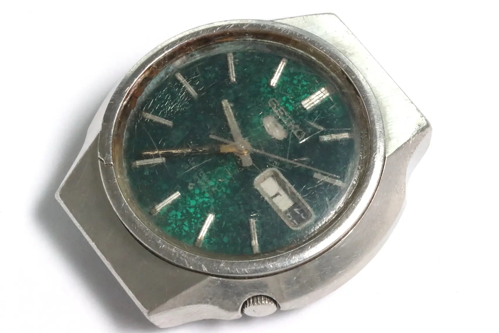 Please read. This watch is found as is, defective and uncleaned. We only do a visual inspection. We haven't examined the watch's interior. Movement parts may be missing, rusty, or broken