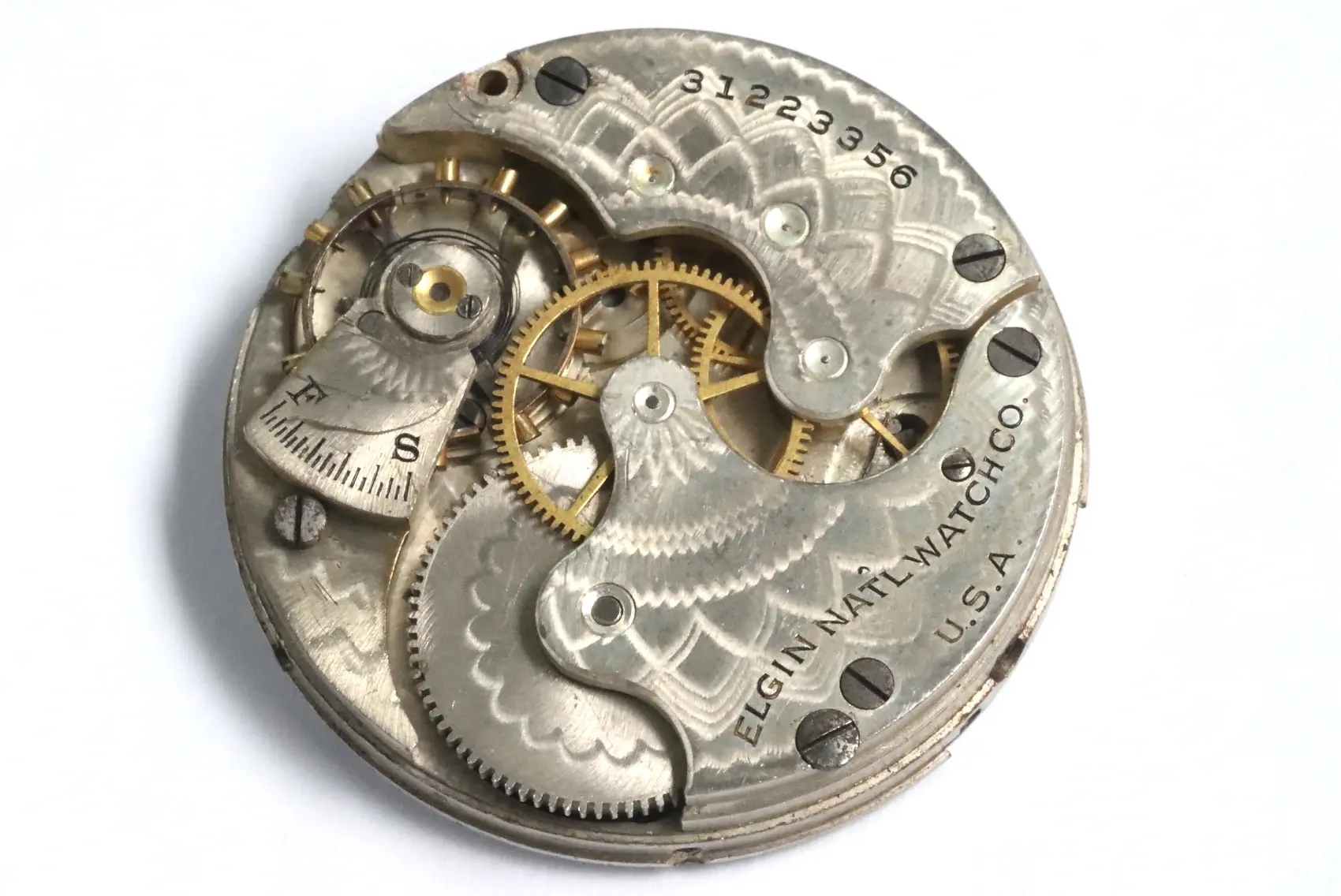 Elgin grade 286 defective pocket watch movement for spares