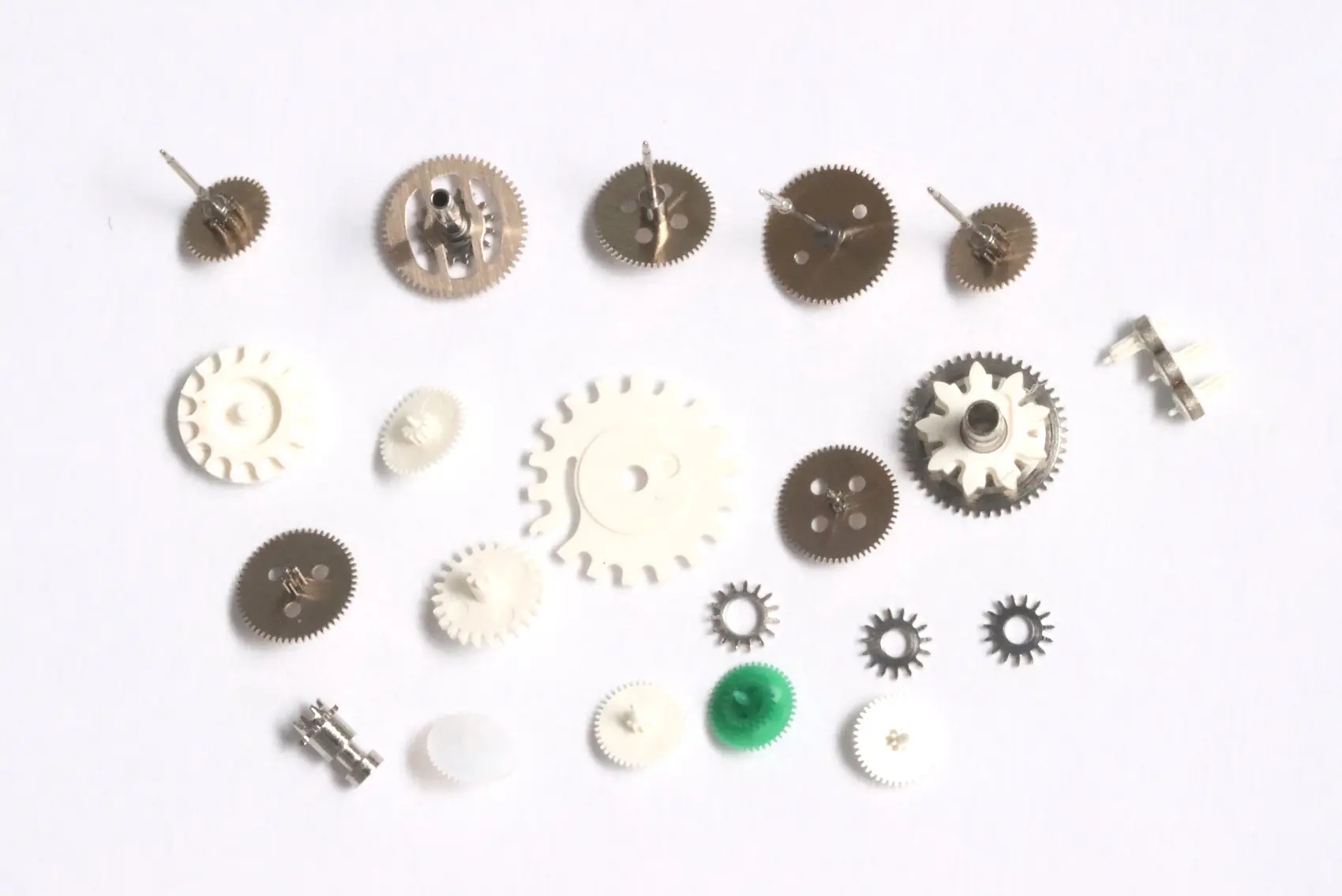 The condition of these parts is as depicted in the provided photographs. Items may be either functional or non-functional; please refer to the description above for specifics. We have not disassembled non-working movements and other complex components, so we cannot guarantee their completeness or functionality. None of the items have been serviced or cleaned. We recommend these parts for sale to hobbyist watchmakers and watch collectors only.